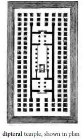 Glossarydipteral April 15, 2024 A classical temple having two rows of free columns, rather than a single row, surrounding the cella. Also see peripteral, pseudodipteral. cella, pseudodipteral